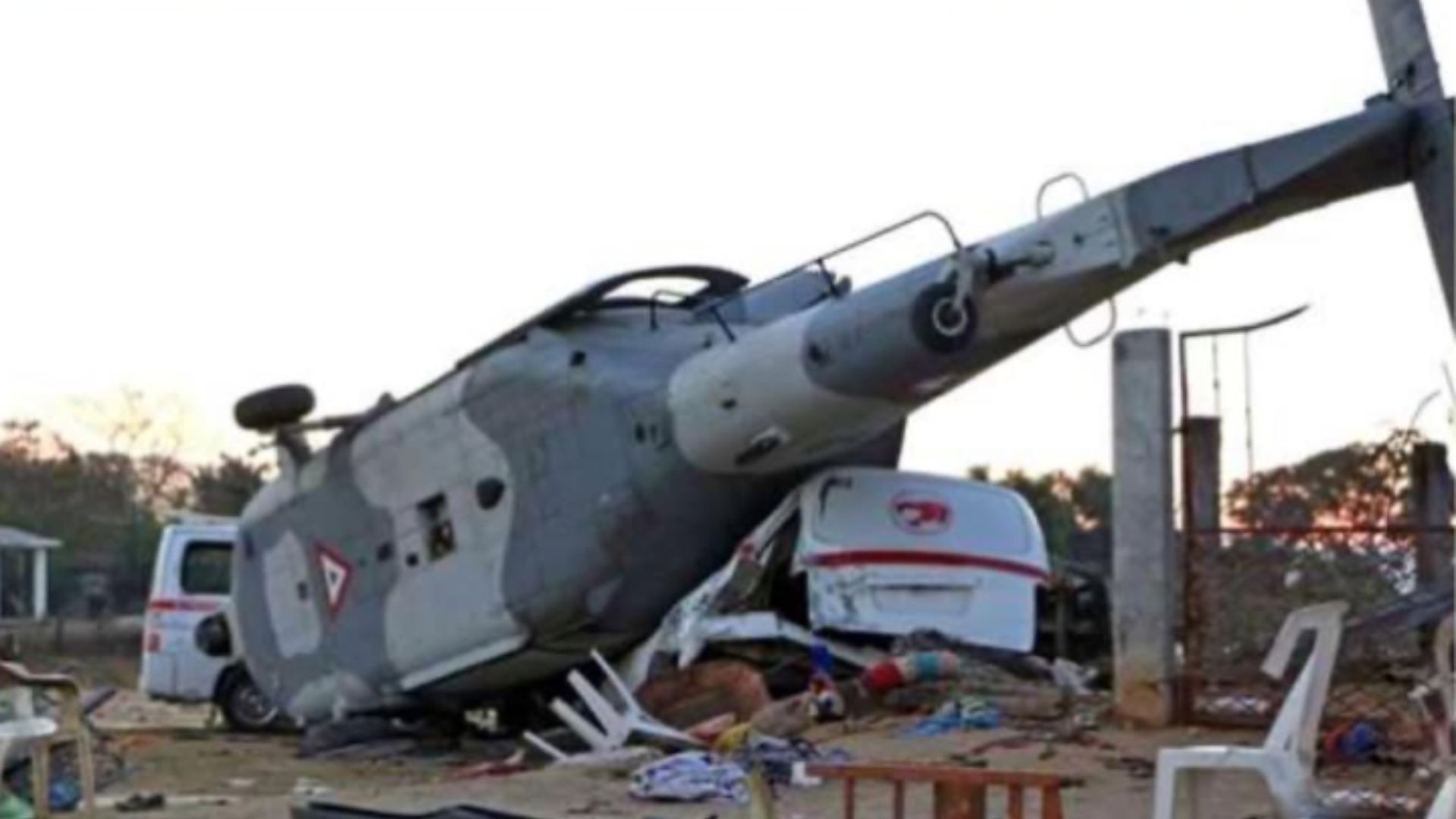Helicopter crashes are particularly catastrophic when they occur near communities. Unlike crashes in remote or open areas, accidents in residential zones often involve civilians who are not prepared for such a calamity. The presence of scattered personal items—chairs, clothing, household tools—suggests that families and community members were living or working nearby at the time of the incident. The collision not only destroyed property but also likely caused multiple injuries and fatalities.